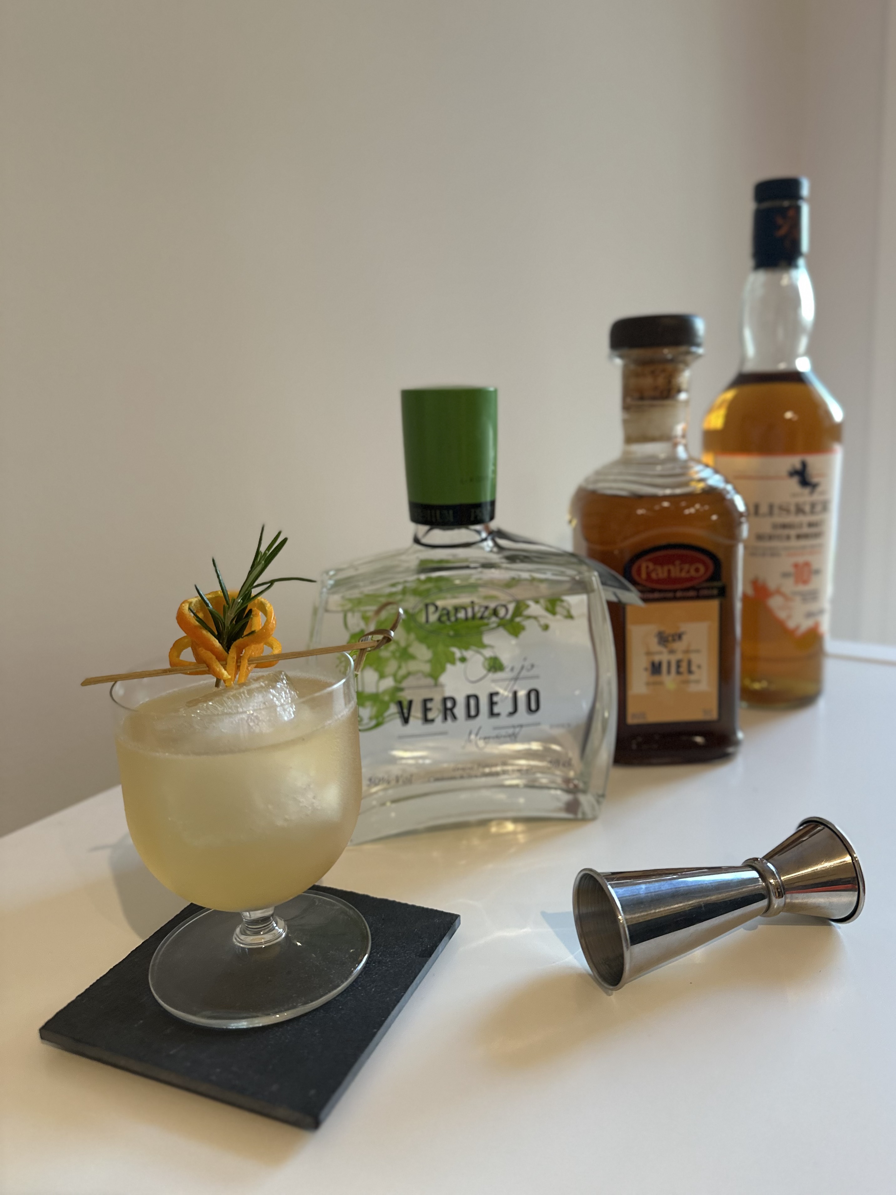 Contexto:”Luscofusco” es una palabra gallega que evoca el momento en el que el día (la frescura del aguardiente de verdejo Panizo y el pomelo) se funden con la noche (la calidez del licor de miel panizo y el humo marino del whisky)
