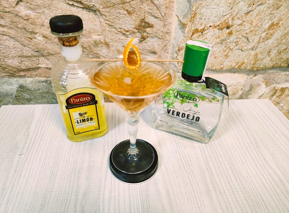 Agitar todos los ingredientes en coctelera, servir en copa Martini