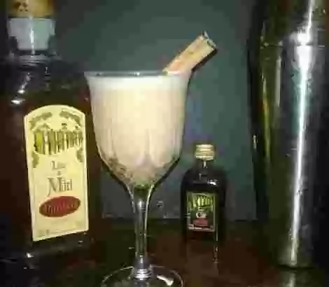 Se depositan todos los ingredientes, exceptuando el Haba Tonka y la rama de canela, en una coctelera y se agitan enérgicamente.